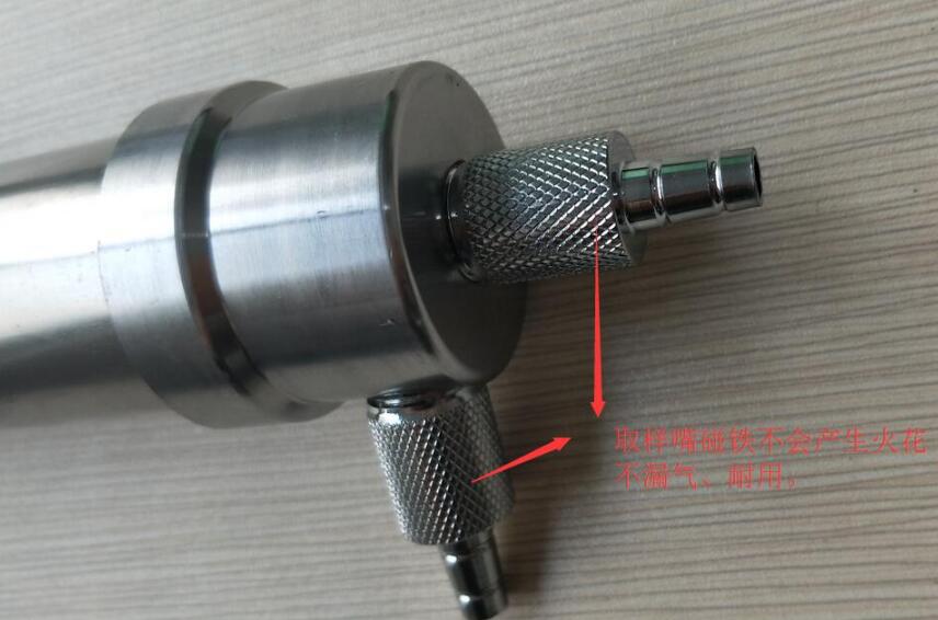 1. 采取氣樣前,應將采取器側面進氣接口與孔板流量計入口端測量嘴連接;頂端出氣接口與瓦斯檢定器連接。